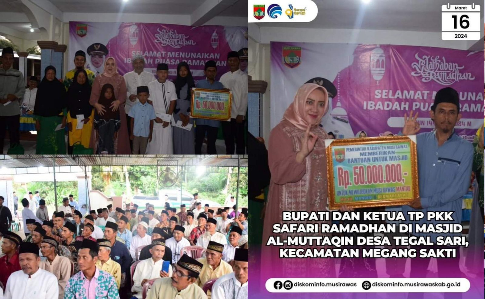 MUSI RAWAS – Bupati Musi Rawas, Hj. Ratna Machmud melakukan Safari Ramadhan di Masjid Al- Muttaqin Desa Tegal Sari, Kecamatan Megang Sakti, Jumat, (15/3/2024).