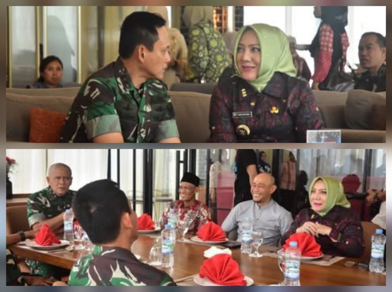 Bupati Musi Rawas Hj. Ratna Machmud @ratnamachmud Sambut Kunjungan Panglima Komando Daerah Militer (Pangdam) II/Sriwijaya Mayjen TNI Ujang Darwis, M.D.A. dalam kegiatan Ramah Tamah di Hotel Grand Zuri Lubuklinggau, Jumat (25/07/2025).