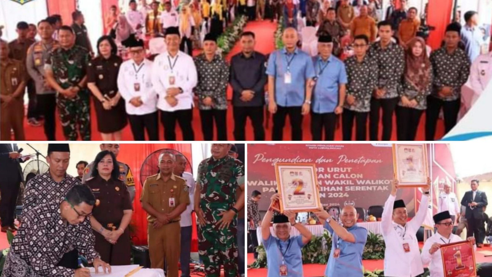 Kemudian Ketua KPU Kota Lubuk Linggau secara resmi membacakan Surat Keputusan KPU Kota Lubuklinggau Nomor 353 Tahun 2024 tentang Penetapan Nomor Urut Pasangan Calon Peserta Pemilukada Kota Lubuk Linggau Tahun 2024.